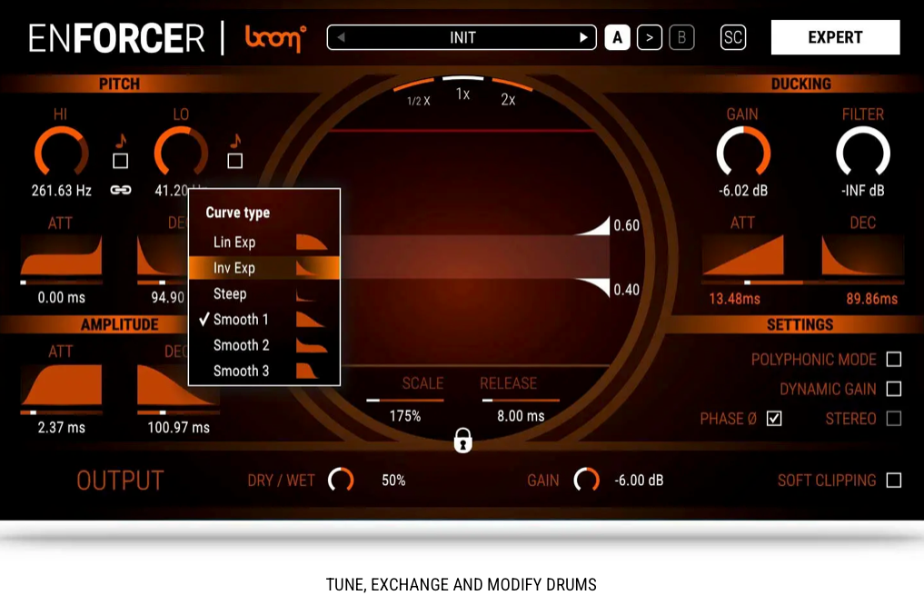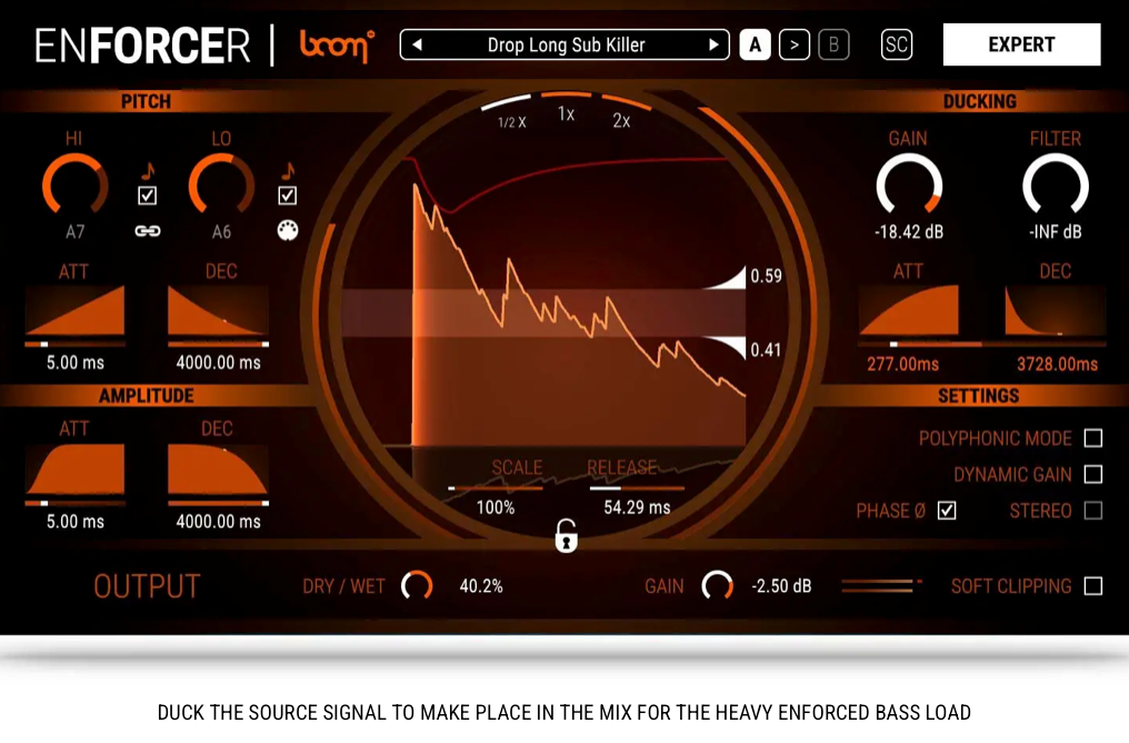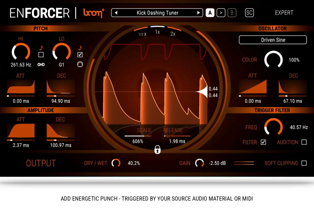 ENFORCER, a bass plug-in that adds irresistible punch, powerful body and a rigorous low-end bass impulse to your samples.